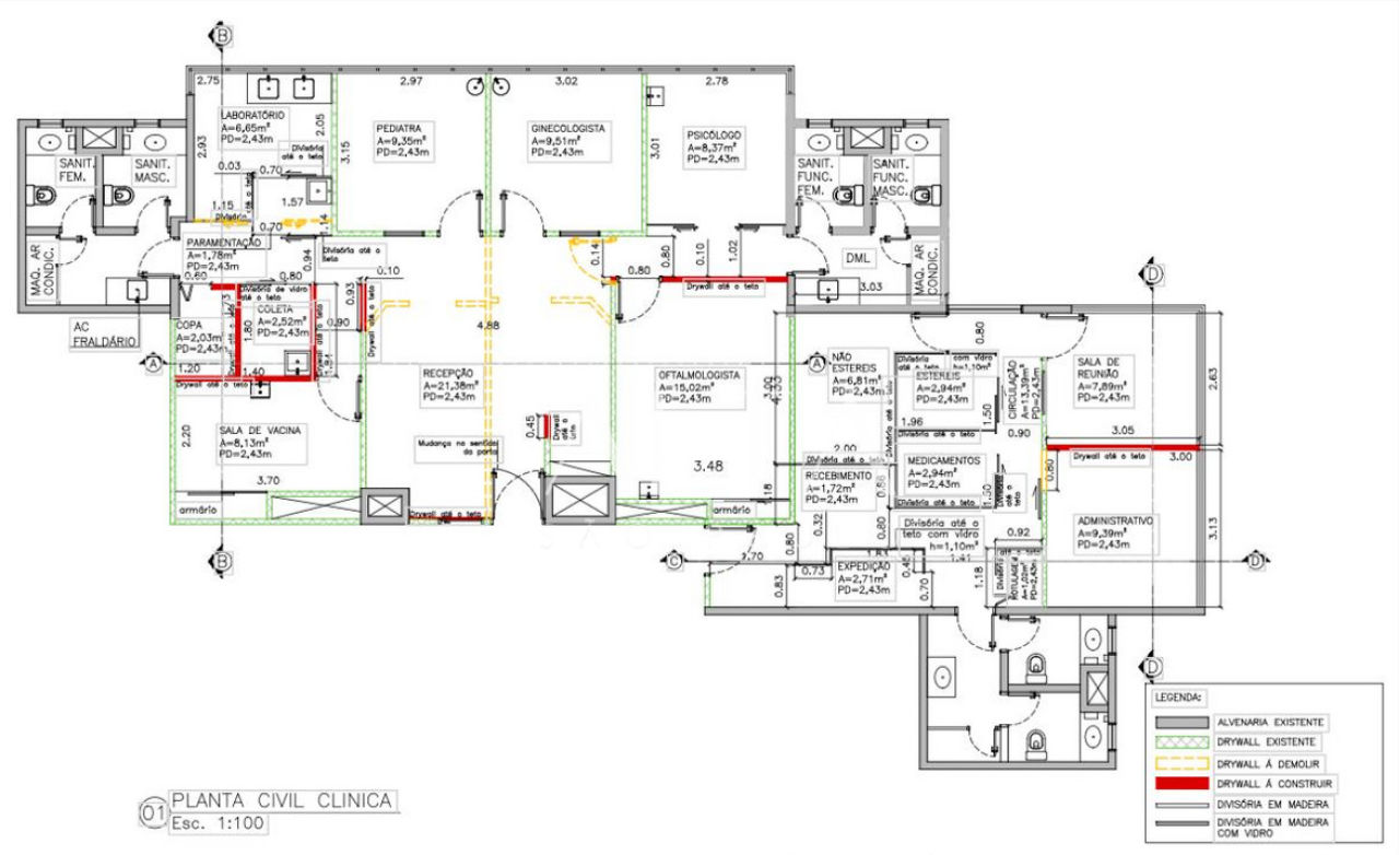 * Área de laboratório, contando com diversos planejados
